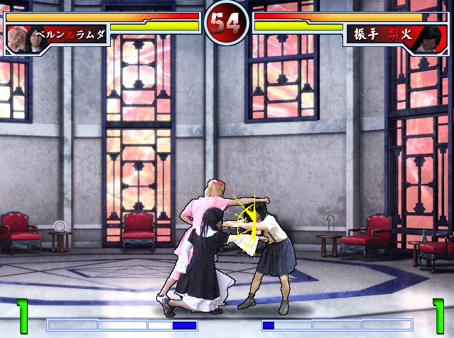 さて、雑談はここまでと。。。 前回の日記にも書きましたが、 今回は「そのひぐらしVS東方2」の役に立つ?テクニックや 「そのひぐらし終」の情報をば。 まず「そのひぐらし終」ですが、ひぐらしの罪滅し編をメインに 皆殺し、祭囃し編などの要素+パロディ要素(←満載)のお話になります。 「そのひぐらしVS東方2」に出ている摩宮リナや薗崎オ魎は ある意味、原作設定を無視して今まで以上に壊れたキャラかもですw 近々、サイトも更新していきますのでお楽しみにです。 配布予定は5/5の 07th Expansion Partyで配布したいなと考えてます。 (↑は受かればの話です・・っと早く申し込みしておかないと\\\) 続いて、「そのひぐらしVS東方2」です。 【技ゲージ関連】 プレイして気づいた方もいるかもしれませんが、 本作では、2ラウンド目以降の技ゲージの増加率が上がってます。 ゲージ消費技や回避技を惜しみなく使って勝利を手にしてくださいね♪ 【抜刀キャンセル】 魔理沙の必殺技「抜刀キャンセル」は ただのフェイントだけではなく、面白い使い方があります。 通常技をキャンセルして「抜刀キャンセル」を行うと 隙を軽減して更なる連続技や立ち回りを展開していく事ができます。 下記の対戦動画でも使ってますね。 【例】 立ち強攻撃→抜刀キャンセル→立ち中→立ち強 等など 実は1作目から実装してますので興味のある方は試してみては如何か。 【空中ダッシュ】 実は八雲紫にのみ、空中ダッシュが実装されてます。 ただ、空中ダッシュ中は攻撃を行うことができないため、 基本は移動手段としての使用になります。 【そのひぐらしVS東方2 メンバーさんの対戦動画】 最後に「そのひぐらしVS東方2」が 近々開催される同人ゲーム大会「剛魂 Vol9」に 展示出展する事になりました。 フリープレイは勿論、対戦大会も出来るかもしれません。 詳細は追って連絡したいと思います。