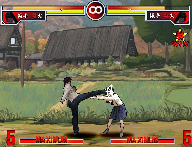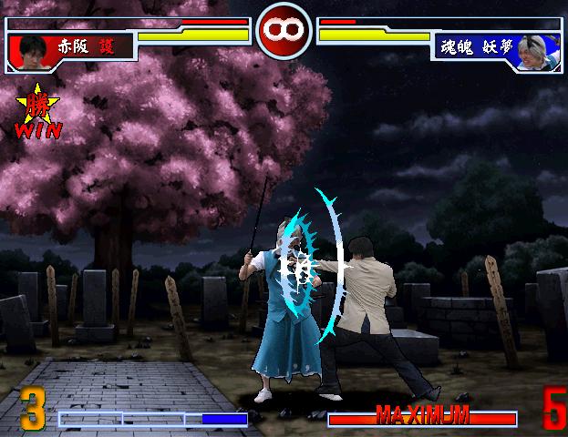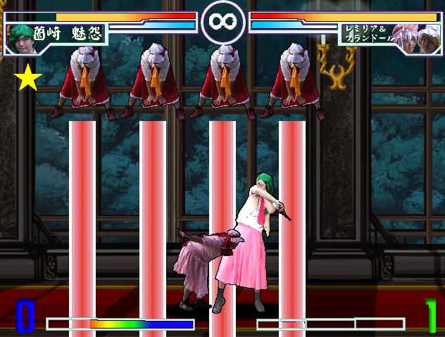 エンディング分岐条件を書いていきたいと思います。 「そのひぐらしVS東方」はアーケードモードの6戦目と7戦目にCPU専用キャラとして ボス・EXボスが出現します。 どのボスが登場するかは1~5戦のプレイ内容次第で変わります。 【6戦目、ボス分岐条件】 [破乳] ・1~4戦目で1本以上取られている。 ・5戦目で1本取られている。 [比那名居天子] ・1~4戦目で1本以上取られている。 ・5戦目でノーミス。 [小此戯] ・1~4戦目をノーミス。 ・5戦目で1本取られている。 [風見幽香] 1~5戦目までノーミス。 【7戦目、EXボス分岐条件】 [理性を失った振手梨火] ・6戦目をノーミス。 [レミリア&フランドール] ・6戦目で1本取られている。 【エンディング分岐条件】 [グッドエンディング] ・6戦目で勝利する。 [バッドエンディング] ・6戦目で敗北する。 以上がアーケードモード分岐条件になります。 是非、全ボスと闘ってみてください。 そのひぐらしVS東方に登場するCPU専用キャラクターを紹介します。 3回目となる今回は、ラストに待ち受けるEXボス 「理性を失った振手梨火」と「レミリア&フランドール」 どちらもラストを飾るに相応しい強さを誇ってます。 「理性を失った振手梨火」 「そのひぐらし」から野獣と化した振手梨火がEXボスとして登場。 サワラズの勾玉を破壊した張本人であり、全ての元凶。 【特徴】 全キャラ中、火力が一番高いのが特徴。 通常の梨火の技に加え、ガード不能の必殺技「梨火タックル」、 通常梨火の最終奥義を三連発出す必殺技「超梨火咆哮」。 と必殺技だけならまだしも、超必殺技「超オヤシロ乱舞」はガード不能で 最終奥義「絶オヤシロ乱舞」「狂オヤシロ乱舞」と2種類あり、 尚且つゲージは1本消費で出してくる。 火力に特化したボスキャラクター。 一見、最強に見えても耐久値は全キャラ中一番低い。 【攻略】 ボス梨火戦攻略のカギは、"攻める" ボス梨火は耐久値が低く、ガードも甘いので 大抵の攻撃は当たってくれる。 また、互いの距離が離れている場合は、高確率で「梨火咆哮」や 「超梨火咆哮」を出してくるので、飛び道具をステップで避けつつ、 ゲージがある場合はステップジャンプで近づき、攻め込もう。 ボス梨火の体力が1/4以下で技ゲージが1本以上ある時は、 高確率で最終奥義を出してくるので、発動してきたらステップで避けて 技ゲージを消費させよう。 「レミリア&フランドール」 「東方」からスカーレット姉妹がEXボスとして登場。 直接手を下して無くても、梨火の運命を変えて サワラズの勾玉を破壊させた黒幕的存在。 【特徴】 レミリア&フランドールは、 火力に特化した梨火に対して、防御面に特化したキャラクター。 火力自体高くないものの、無敵のサポートキャラ「フランドール」の各種攻撃、 それに加え、優秀な技を持つ「レミリア」。 必殺技は勿論、スペルカードも高性能な技が多い、 中でも 技が中断される事無く、フランドールのみで行ってくるため脅威。火力は無くても 【攻略】 レミリア&フランドール戦 攻略のカギは、ステップ。 サポートのフランドールを含めて、とにかく飛び道具系が多いレミリア&フランドール。 距離が離れていると、ダッシュで近づき、 レミリア&フランドールが何かしらの攻撃を出してきたら、 ステップで攻撃を避けつつ近づき、投げやアルティメットアタックを当てていこう。 特に注意したいのがフランドールが4人に分身して上からレーザーを出す スペルカード「フォーオブアカインド」。 これを出してきたら大人しくガードするか、ステップで離れよう。 EXボスを倒せば、感動?(全くしない)エンディングが待ってますので、 クリア目指してがんばって下さい。 次回は、ボス・エンディング分岐を紹介したいと思います。 |